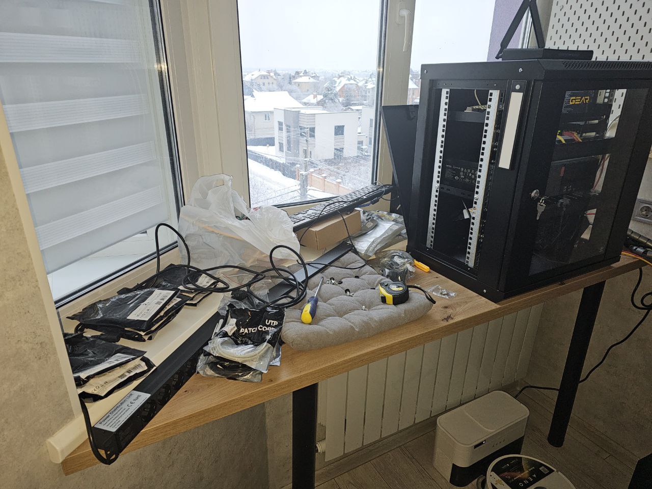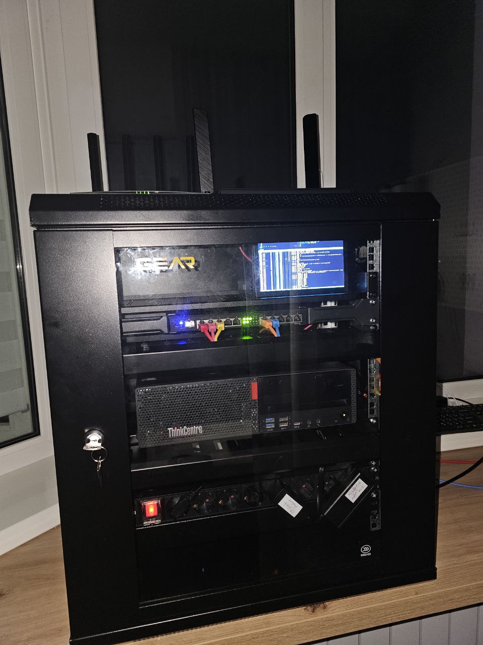 At some point I looked at that ThinkCentre standing alone on a windowsill and realized it deserved a more permanent place. That naturally led to getting a small server rack, and once I had a rack, it felt reasonable to put the network gear there as well.