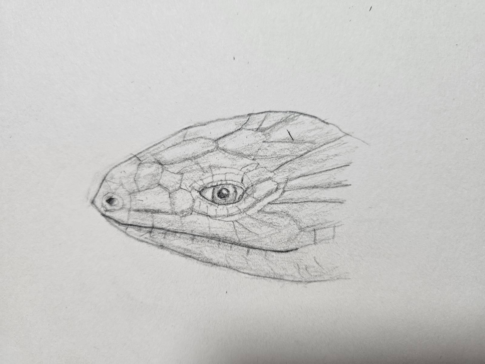 Here is one I did of my pet lizard's face. (Just graphite pencils; no colour.)