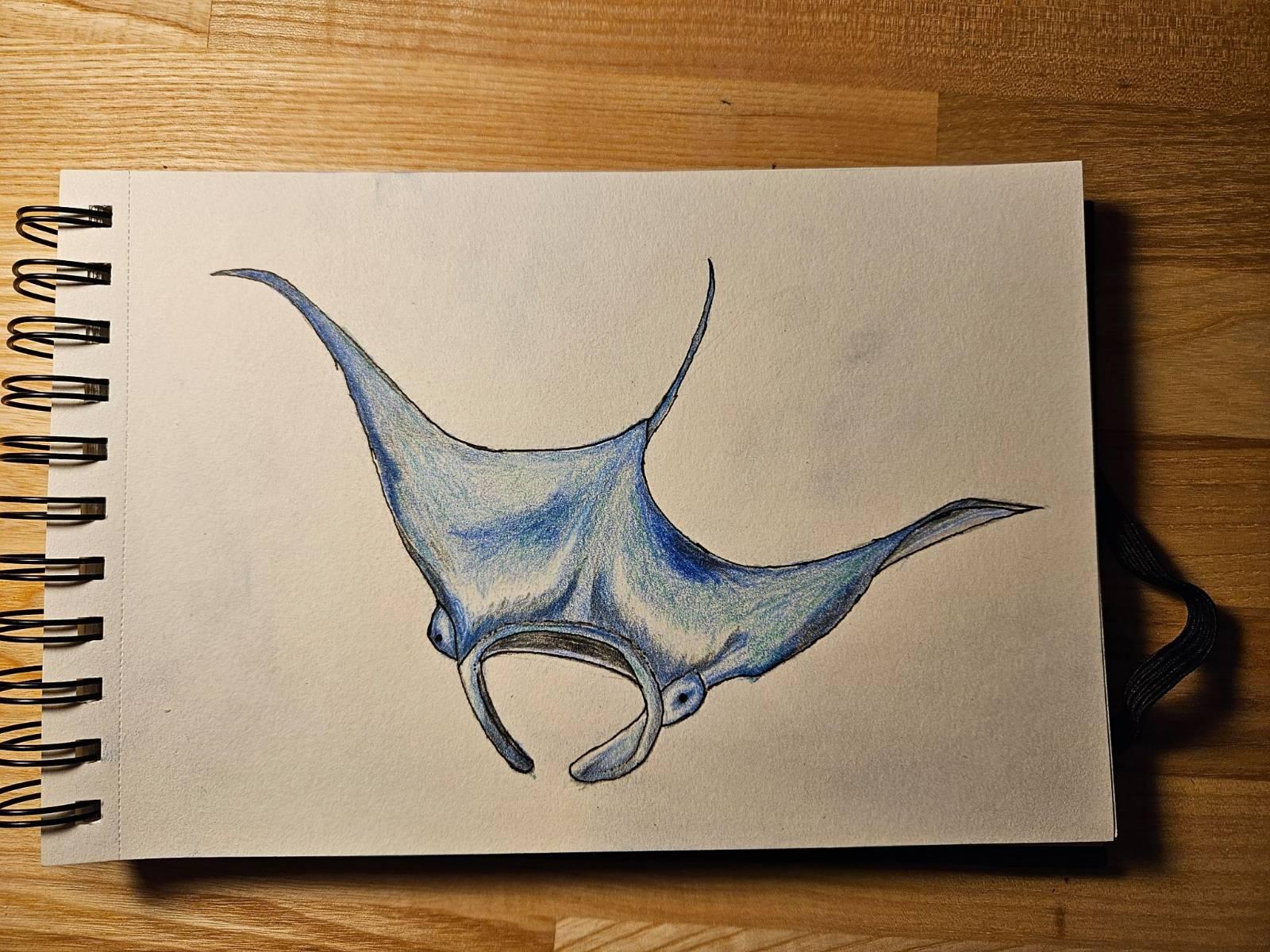 Edit: I have now drawn a manta ray. Coloured pencils and black ink; caveat: I never claimed to be actually any good at this.