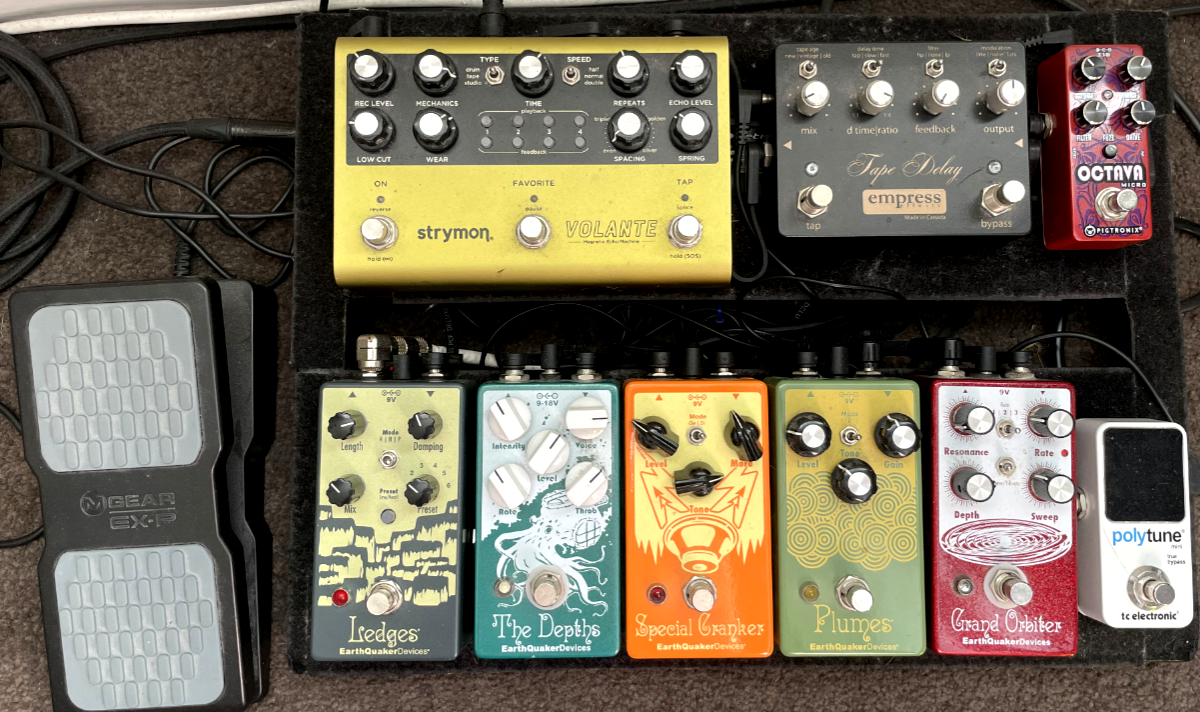 I do do ambient from time to time mostly in the box though (Bitwig, if you care). If you are guessing by the pedals, the Empress Tape Delay is set as a chorus/flanger rather than being used as a delay, Volante is mostly delay (i find its spring simulation a bit much most of the time), although im not using it for the most extreme things its capable of most of the time